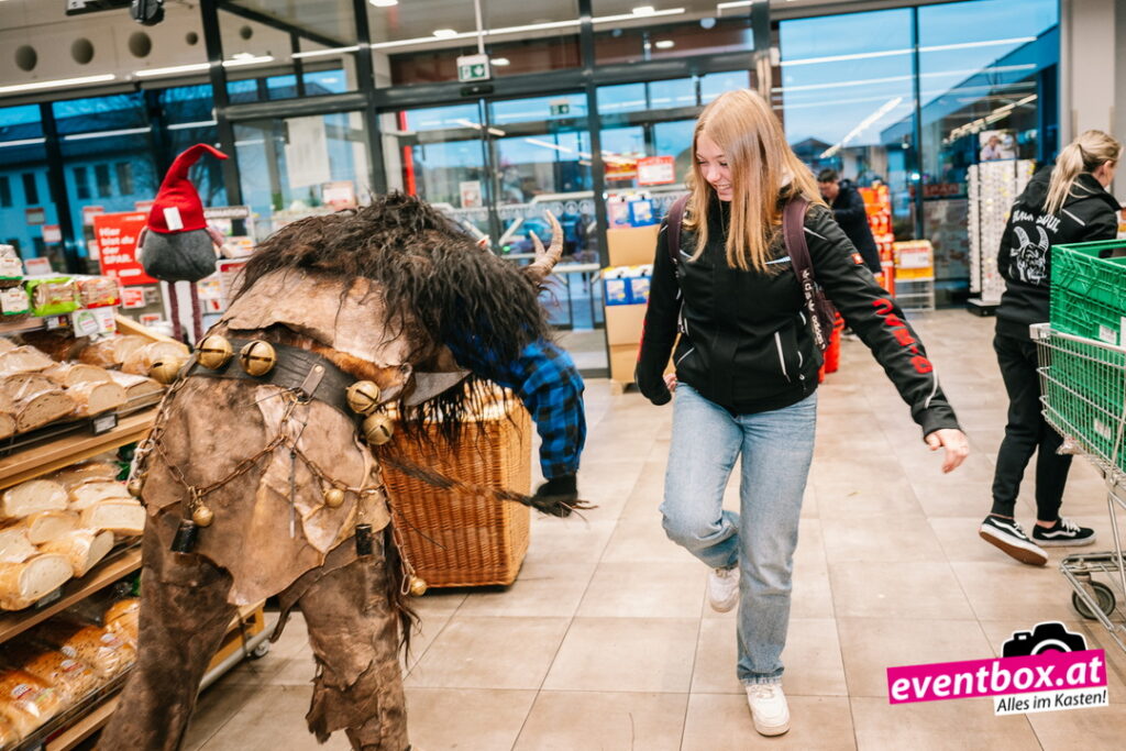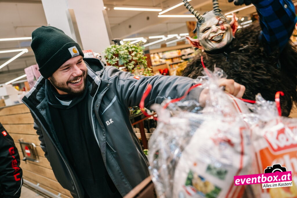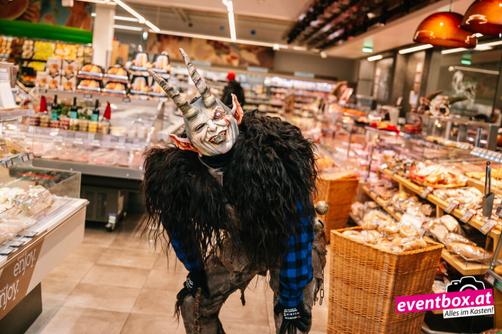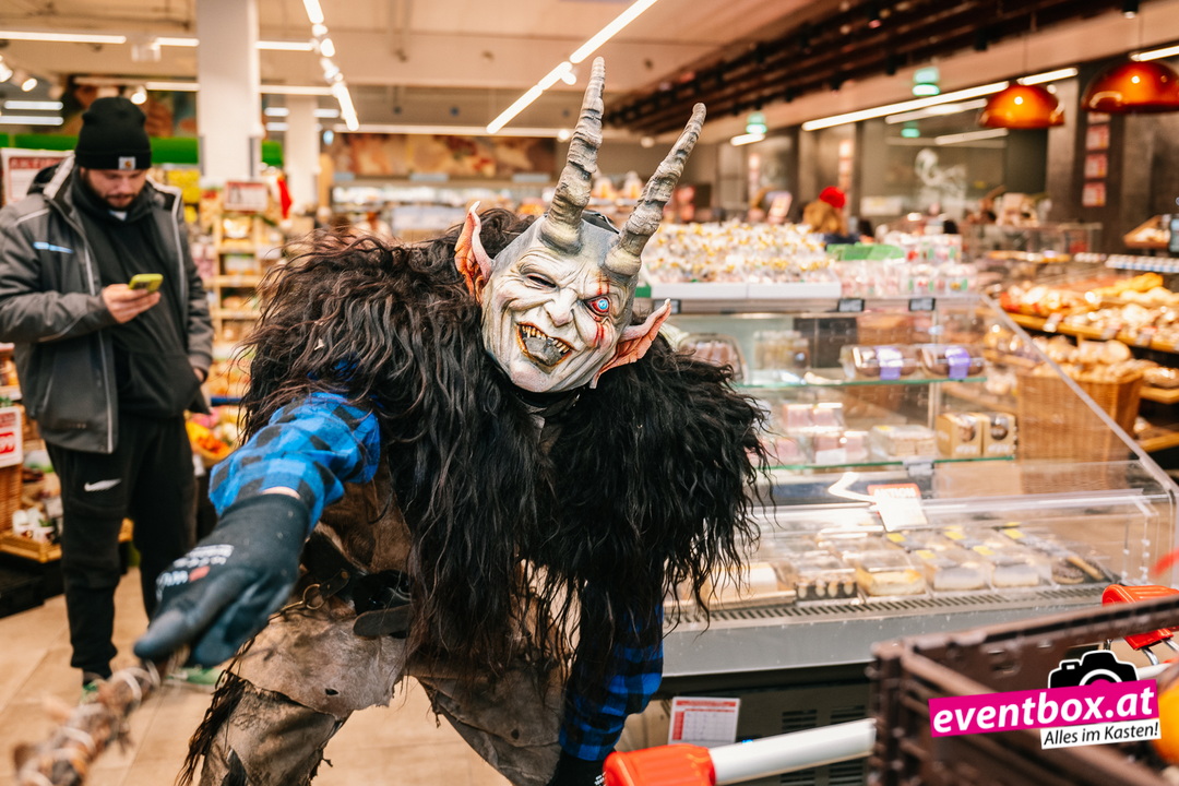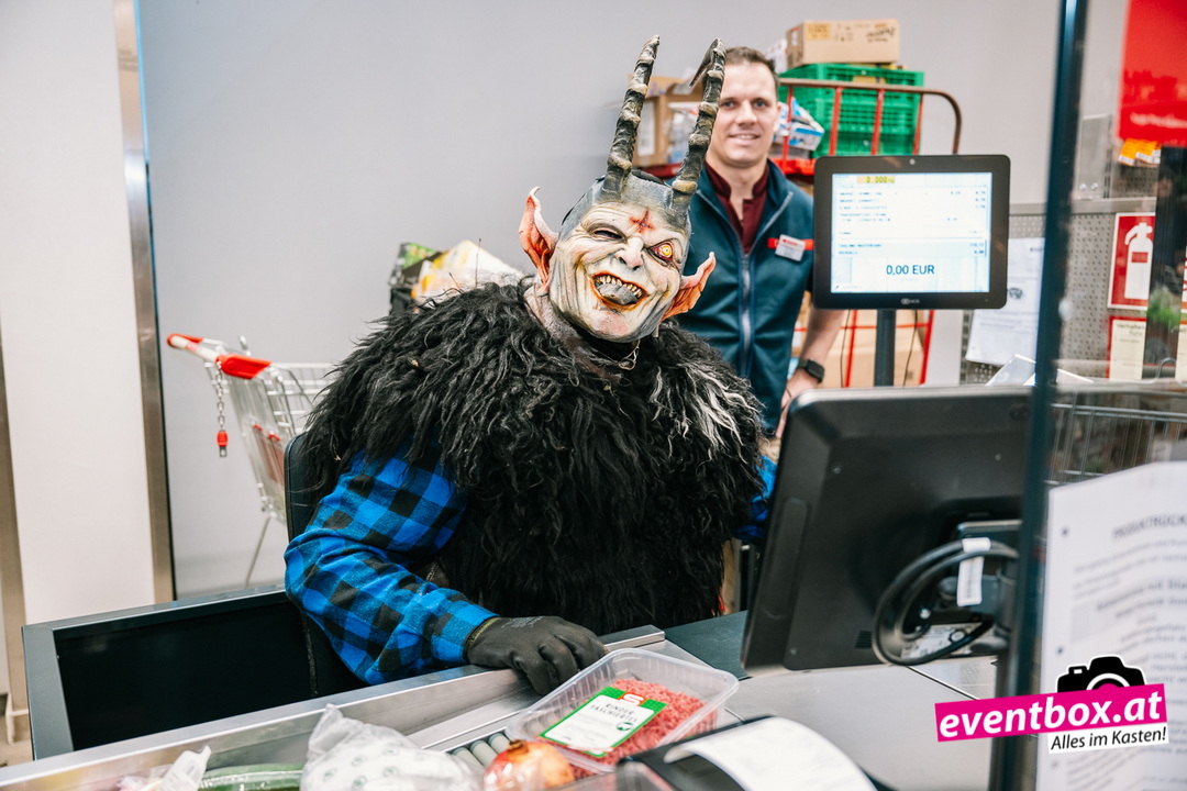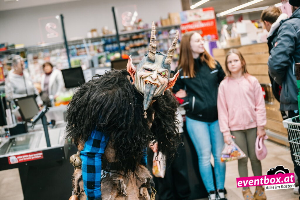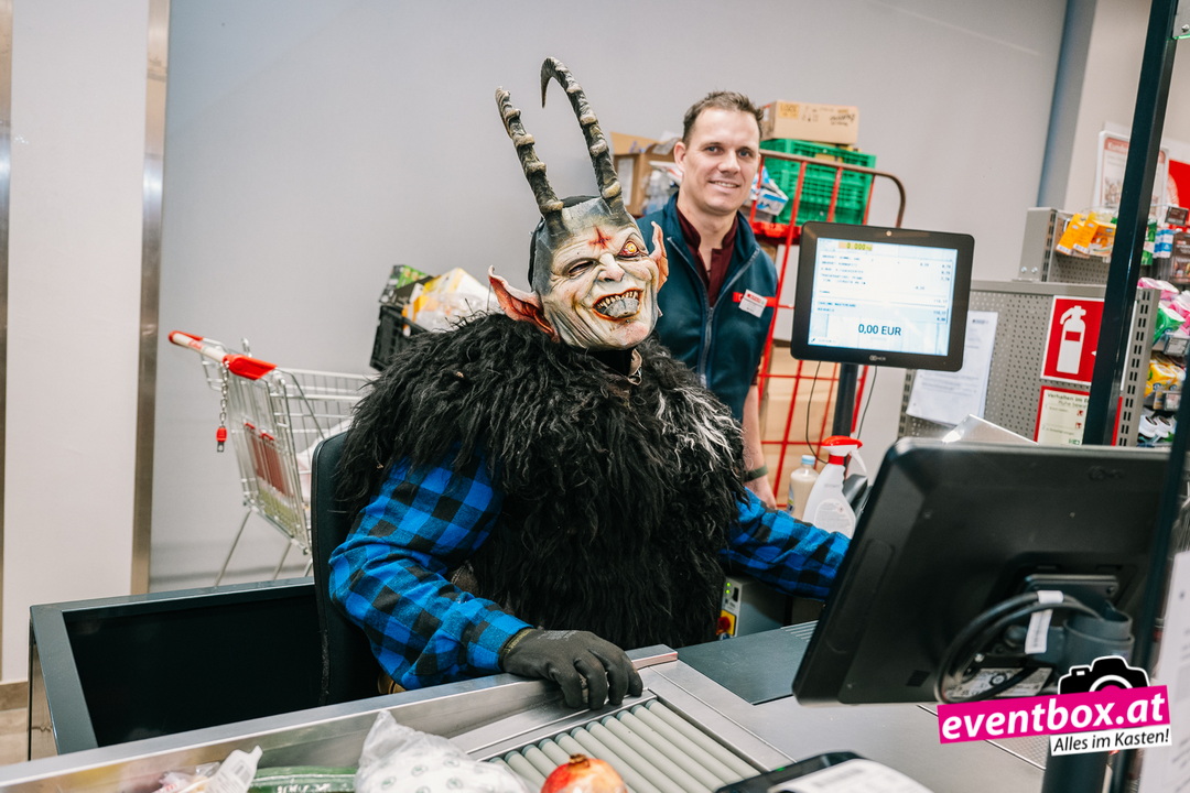 Die Krampusgruppe Black Soul aus Völkermarkt machte den Spar-Markt unsicher – verteilte dabei aber auch fleißig Krampussackerln an die Kinder.