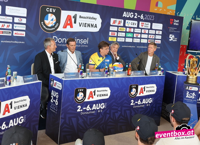 In einer bedeutenden Pressekonferenz mit dem Titel „Beach-Volleyball: Kick-off-PK zur EM“ präsentieren hochrangige Persönlichkeiten, darunter Minister Werner Kogler von den Grünen und Stadtrat Peter Hanke von der SPÖ, begeistert die bevorstehende Beachvolleyball-EM in Wien.