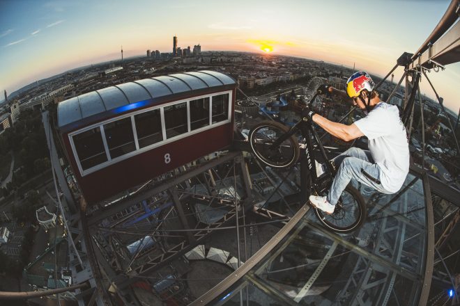 Zum Auftakt der weltbesten Freestyle Show Anfang Juni 2022, schickte nun Masters of Dirt den Bike-Star und Youtube-Milliardär Fabio Wibmer zu einem epischen Stunt: am Wiener Riesenrad präsentierte das Ausnahmetalent Wibmer sein Können in schwindelerregenden 65 Metern Höhe. Der 26-jährige Osttiroler begeistert seit Jahren mit atemberaubenden Performances zig Millionen User und ist seit Jahren Fixstarter bei Masters of Dirt.